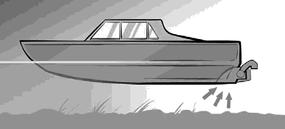 При скорости глиссирования судно с водометным двигателем обычно без труда проходит заросшие участки водоема. Но в более сложных условиях возможна закупорка. Следует немедленно устранить закупорку водомета.