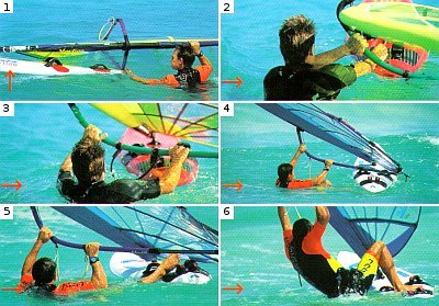 Шаг 6. Поднимая парус и разворачивая его на себя, вы наполните его ветром и затем легко взберетесь на доску.