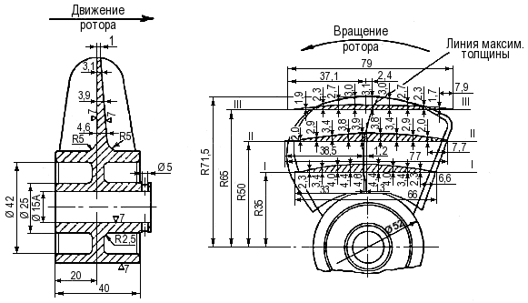 При изготовлении съемного спрямляющего аппарата лопатки привариваются к ступице и наружному кольцу, имеющему посадочный диаметр 150 мм. Съемный спрямляющий аппарат удобен тем, что позволяет быстро заменять лопатки или зачищать поврежденные кромки в условиях эксплуатации. Другие же основные детали этого водомета не имеют принципиальных отличий от деталей описанных выше моделей. Размеры ротора приведены на рис. 56.