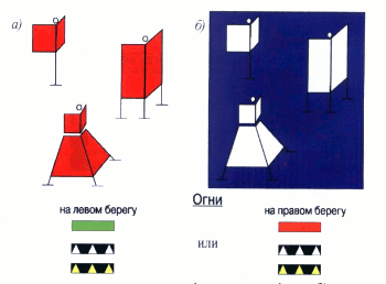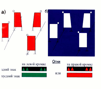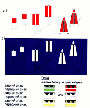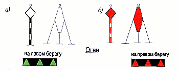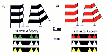 Рис.6. Ходовой знак: а) на левом берегу; б) на правом берегу