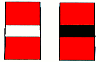 Знак выставляется непостредственно над оконечнностью препятствия со стороны судового хода. Дублирует обычный кромочный знак, высставляемый на расстоянии 10-15 мм от знака опасности в сторону судового хода. Приближаться к знаку опасности запрещается. | |