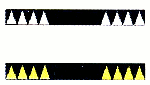 Обозначает особо опасные места у кромок судового хода (затопленные сооружения, оголовки дамб, и .др.) дублирует кромочный знак. | ||