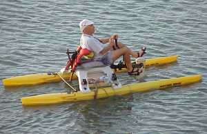 Waterbike - спортивный катамаран для тех, кому нужна скорость, манёвренность, мобильность, а так же для тех, кто хочет иметь тренажёр на воде. Базовая комплектация: 2 понтона, рама, приводная колонка, сиденье. |