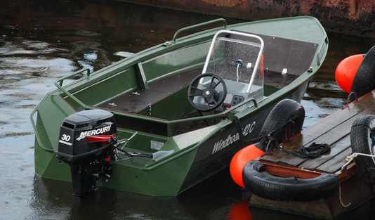 Компактная консоль с установленным рулевым управлением и ветровым стеклом нисколько не мешает главному предназначению лодки - рыбалке.