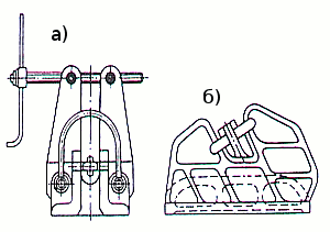 Рис. 34. Стопор якорного устройства, а - винтовой; б - с заклад, палом