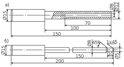 Рис. 63. Выколотки: а — для монтажа втулки тяги реверса; 6 — для демонтажа тяги реверса