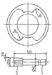 Рис. 67. Приспособление для ремонта впадин шестерни. 1 — стальная оправка; 2 — абразивный камень; А — места обработки