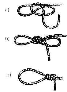 Узел легко развязывается, если потянуть за коренную часть троса.